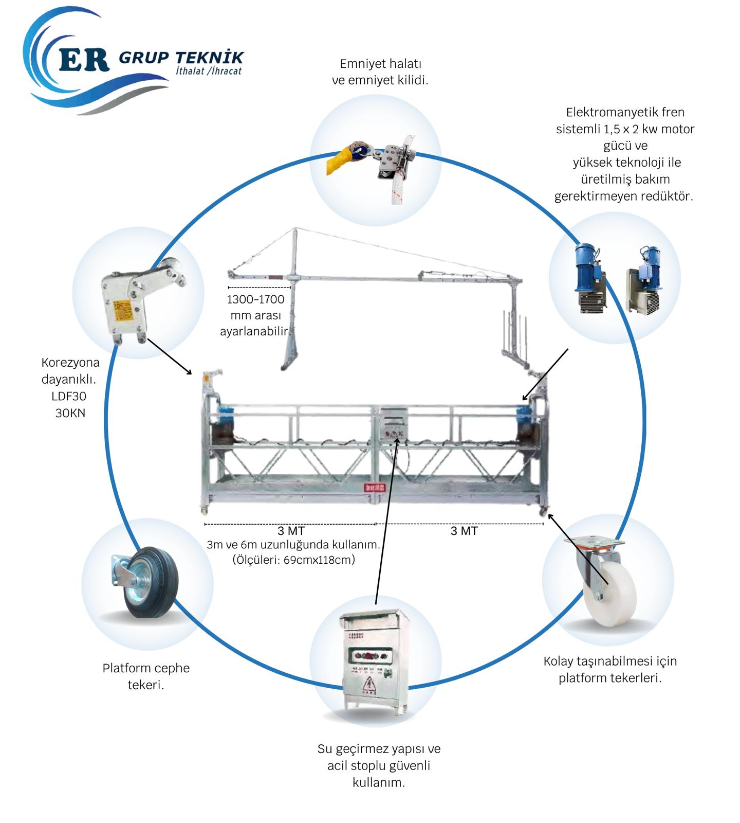 Er Grup Teknik; elektrikli asma iskelelerin satışı, kiralanması, kurulumu, sökümü, teknik servis ve periyodik kontrol hizmetlerini sunmaktadır.
